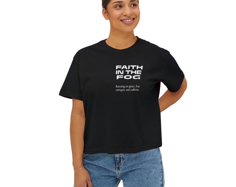 Irreverent humour meets perimenopausal vibes. The Faith in the Fog collection is designed for women navigating the midlife season of transition, growth, and becoming. Each item in this collection features: