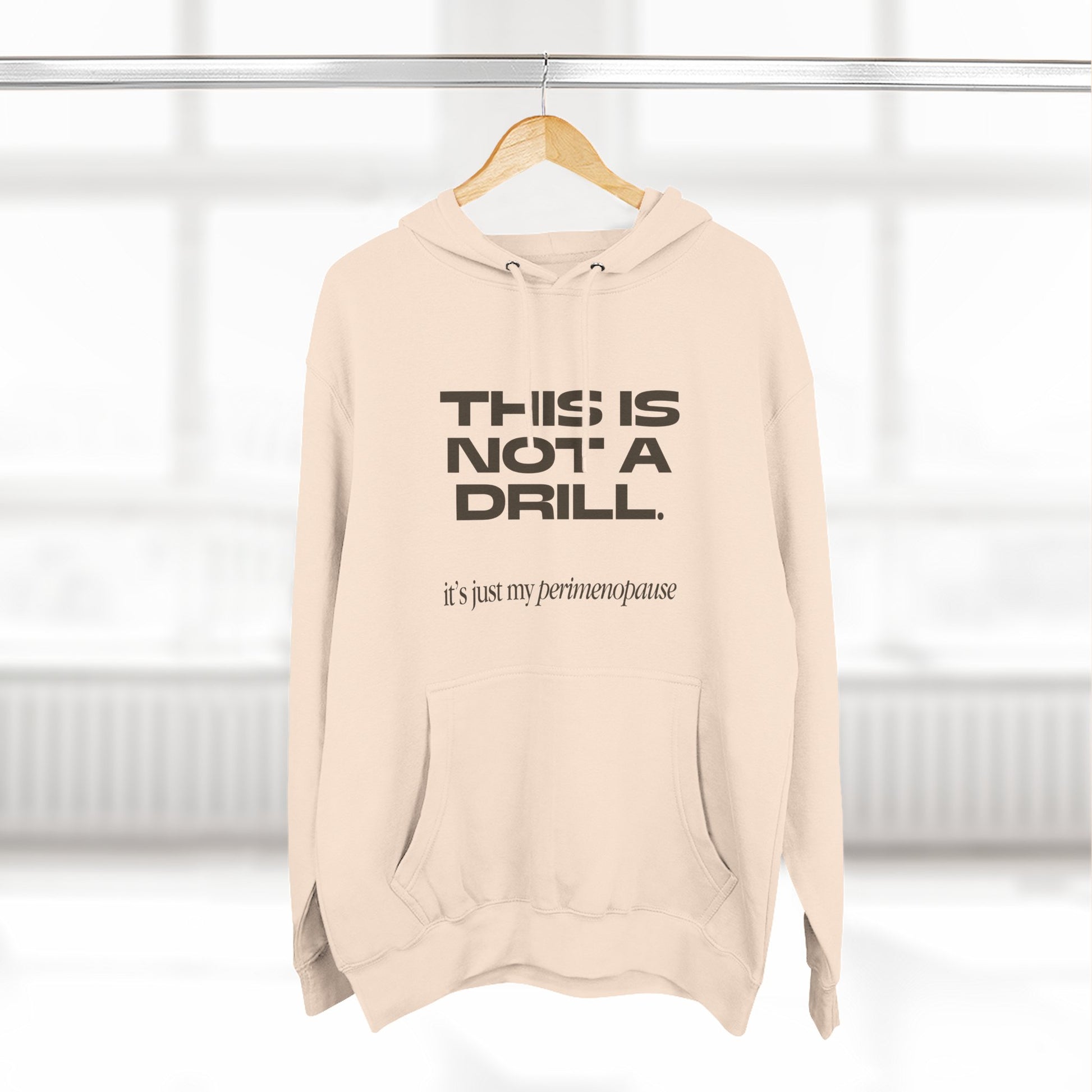 Irreverent humor meets perimenopausal vibes in this women's hoodie. Perfect for women experiencing the joys of perimenopause and looking for a humorous way to embrace it. Ideal for casual wear or as a conversation starter during gatherings with friends. Beat the cold with this premium pullover hoodie that's just the right layer of warm and cozy. Made with three-panel fleece lining, this pullover is double stitched for durability and roomy. Pick one in your favorite color to match your style.